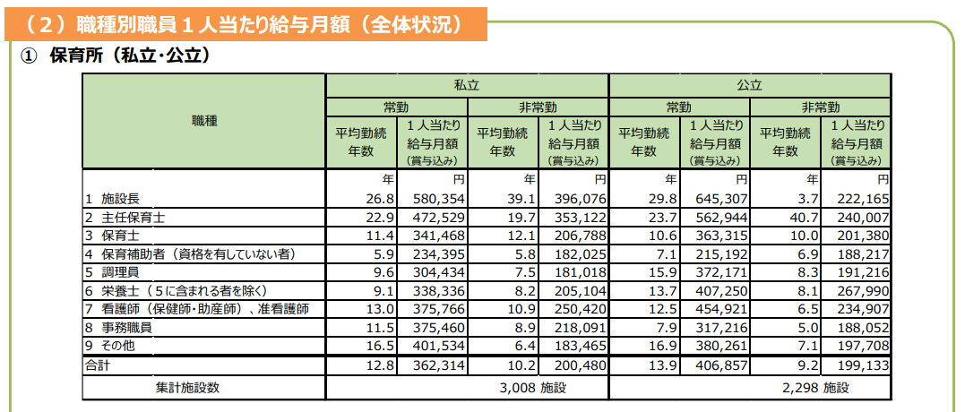 関連記事:保育士の平均年収は約327万円!勤続年数・年齢・都道府県による給料の違いや年収アップの方法を解説