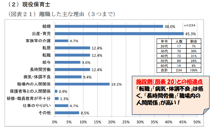 賃金の低さや休暇の取りにくさが離職の主因として挙げられ、社会全体が保育の重要性を正しく理解していない現状が、給与水準の低さに繋がっています。