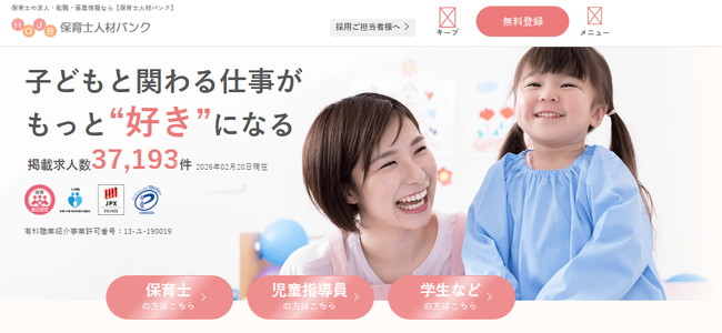 | 公開求人数 | 保育士求人 約37,000件以上(2026年2月時点/サイト内検索結果) |