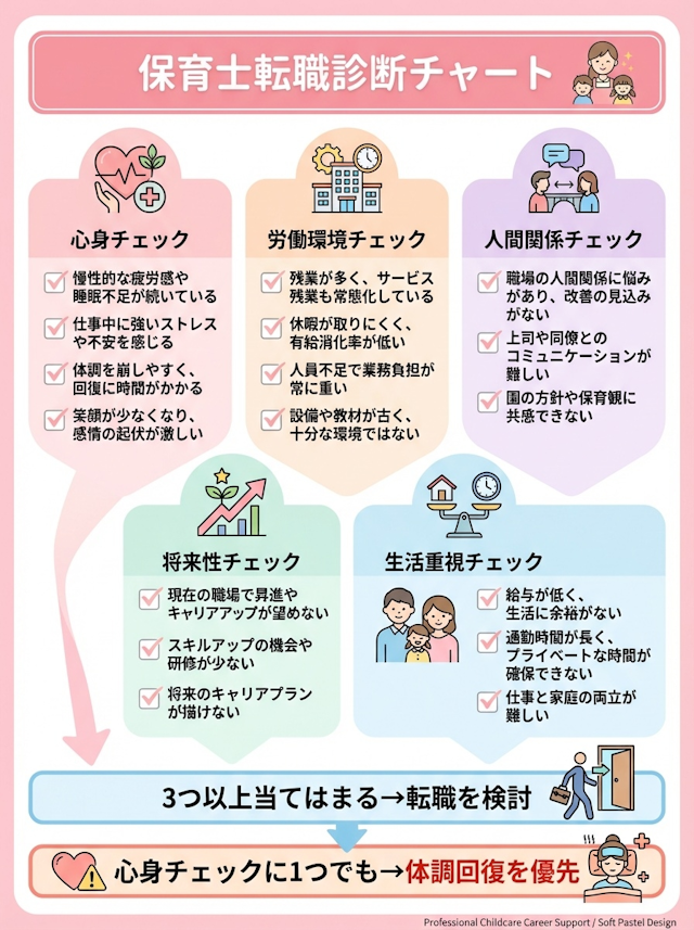 本記事では、自己診断チャートで転職が必要かを判断しつつ、入職前に園の内情を確認する手順まで示します。